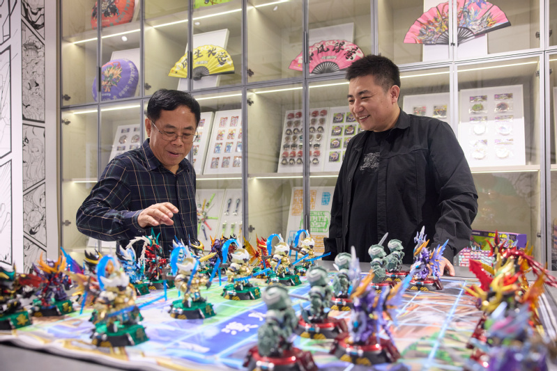 在东秀文化传播有限公司创始人王东东、CEO宇天阳及副总经理任绿柳的热情接待下,刘洊波一行首先参观了摩动核的生产基地和展厅。在参观过程中,大家被“摩动核”以中国传统文化为根基,融合现代机甲设计理念所打造的系列动漫模型和衍生产品深深吸引;这些产品不仅设计独特,而且工艺精湛,充分展示了中国风机甲的独特魅力。
