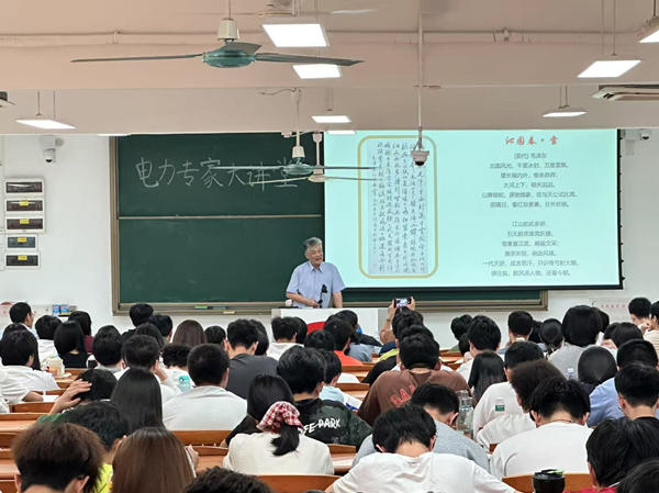张尧带领同学们从“中国第一”看中国电力发展、从“世界第一”看中国电力发展和地位、从传统火力发电到如今清洁能源的发展使用……他阐述了电力和电力系统历经了怎样的发展历程,以及新型电力系统在技术革新、环境保护和可持续发展等方面所面临的挑战。他还讲述了中国电力教育的发展历程。1908年国立交通大学成立第一个电力专科专业,1933年北洋大学成立第一个电力本科专业……这场跨越百年的教育接力,正为构建新型能源系统注入不竭动力,书写着属于这个时代的电力强国答卷。