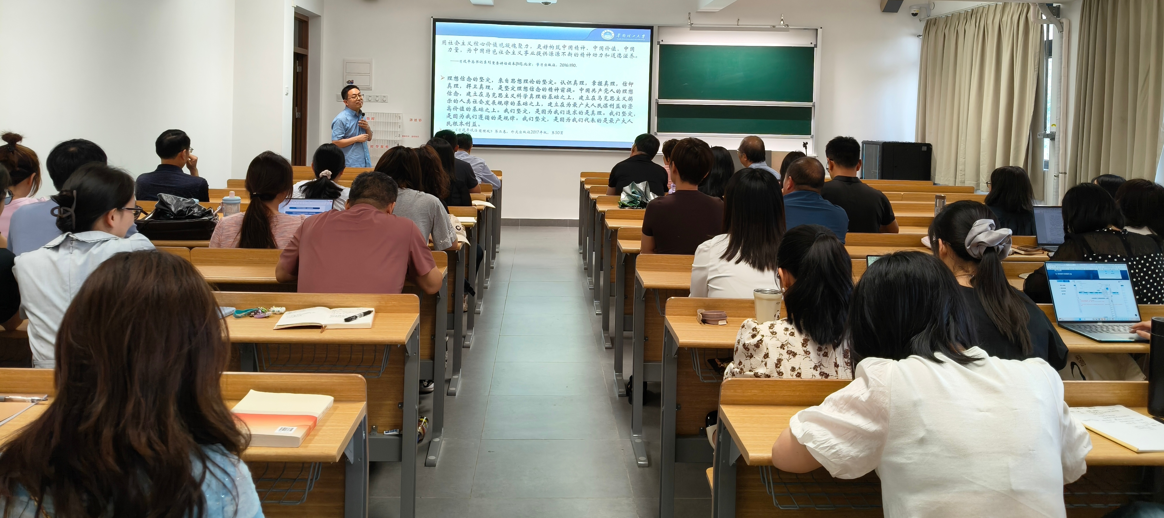本网讯(记者 邹春梅)为进一步推进思政课发展,提高思政课教师的教育教学质量和水平,4月29日下午,马克思主义学院邀请华南理工大学马克思主义学院副院长、博士生导师张国启教授在A12-510开展专题学术讲座。本次讲座由马克思主义学院院长吕志教授主持,马克思主义学院全体教师参加了讲座。