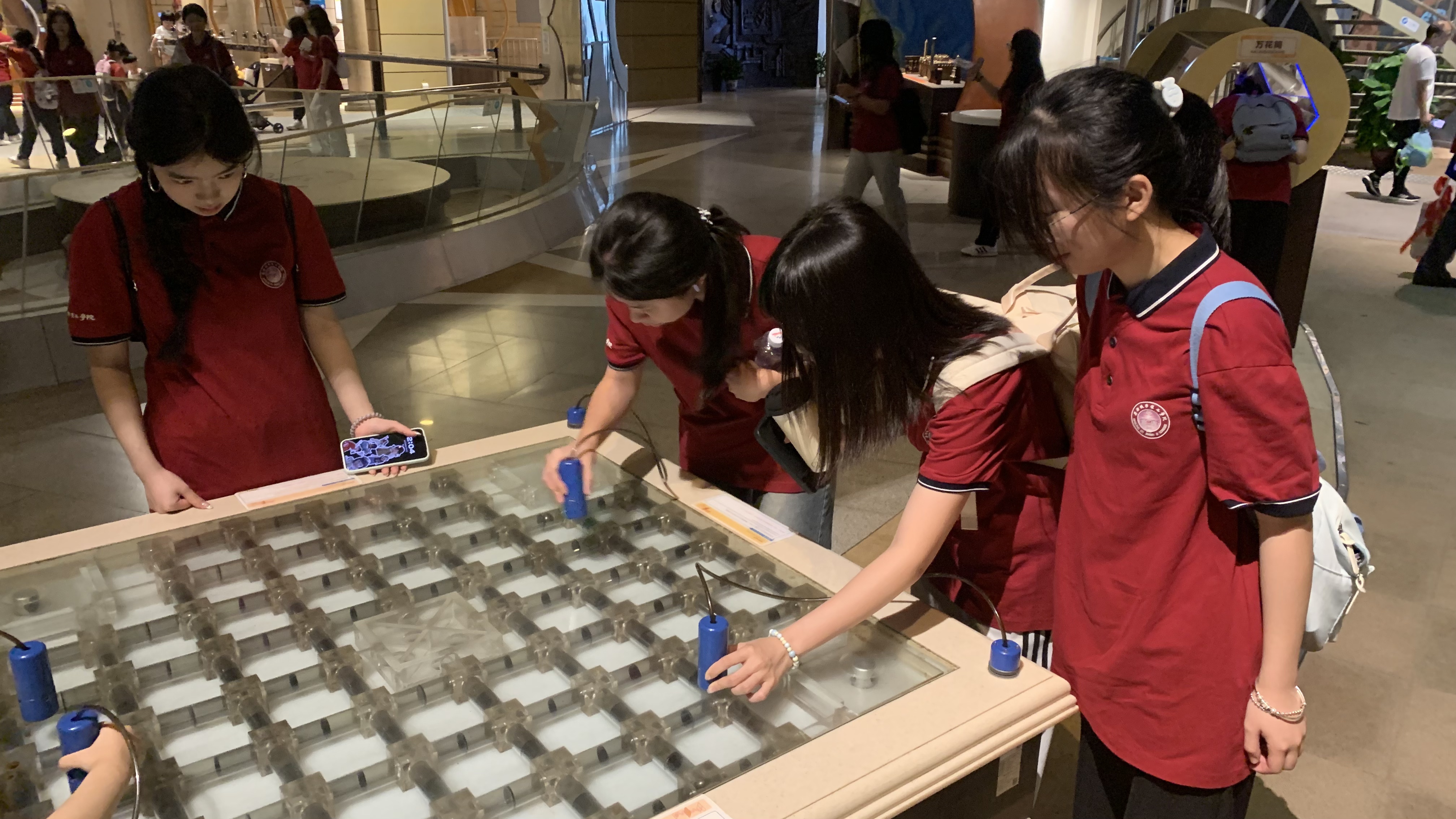 抵达广东科学中心后,同学们根据自身兴趣,选择探索不同特色的展馆。在筑梦星辰探秘海洋展馆里,浩瀚宇宙与神秘海洋的震撼景象近在咫尺,同学们仿佛置身于星际之旅与深海探秘中,对宇宙的浩瀚无垠和海洋的深邃有了更直观的认知。人与健康展馆则聚焦生命健康主题,从生理机能到心理健康,全方位引导大家关注自身健康,树立科学生活理念。此外,同学们还参观了新一代智慧通信展馆,该展馆以“智慧互联·连接未来”为主题,通过“智赋百业”“智启新生”等四大展区,呈现出5G、AI、数字孪生等技术在教育、医疗、娱乐等领域的应用,让同学们对前沿科技有了更深入的了解。