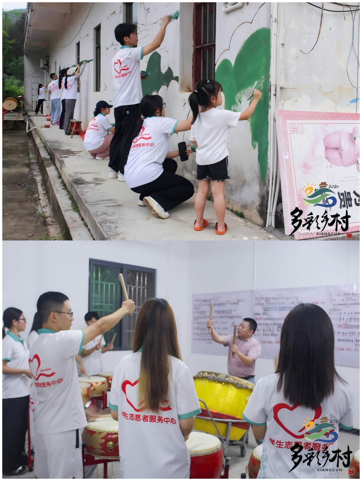 《墙绘映乡村,锣鼓振人心》作品主要由两部分组成:一部分聚焦于墙绘活动,另一部分则聚焦于客家锣鼓。通过镜头记录下实践团成员们从齐心协力绘制墙绘,到共同奏响客家锣鼓的故事。