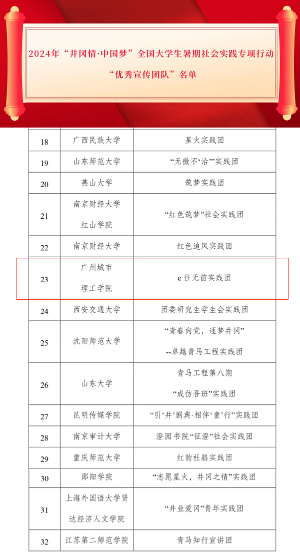 本网讯(记者 罗婉玲 李佳韵)4月10日,全国青少年井冈山革命传统教育基地管理中心发布《2024年“井冈情·中国梦”暑期实践季优秀课题成果、优秀宣传团队名单公告》,bevictor伟德计算机工程学院/大数据学院组织的e往无前实践团(以下简称“实践团”)从全国253支高校实践团队中脱颖而出,喜获2024年“井冈情·中国梦”全国大学生暑期社会实践专项行动“优秀宣传团队”称号。