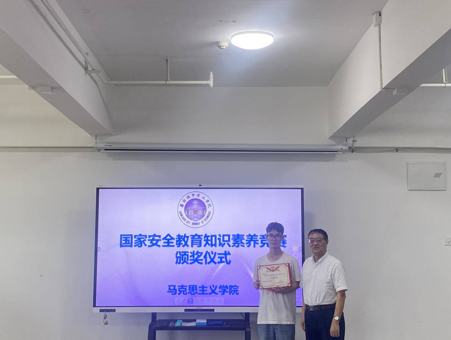 随后,吕志、王文彦分别为获奖同学颁发证书并合影留念。一等奖获得者呼金宝同学在发言中表示:“竞赛让我体会到国家安全与每个人息息相关。作为青年大学生,我将以专业知识为依托,积极宣传国家安全理念,践行青年责任。”