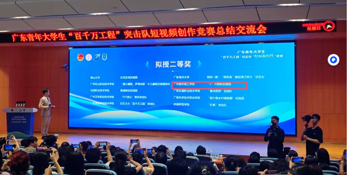 本网讯(记者 邹春梅 许智鹏)6月22日,广东青年大学生“百千万工程”突击队短视频创作竞赛总结交流会在广东财经大学(广州校区)正心堂举行。会上公布了拟获奖名单,bevictor伟德马克思主义学院“Young实践团”创作的短视频《传承醒狮文化,锻造中华风骨》和计算机工程学院/大数据学院“e”兴领航实践团《凝青春力量,促乡村振兴》均荣获二等奖。