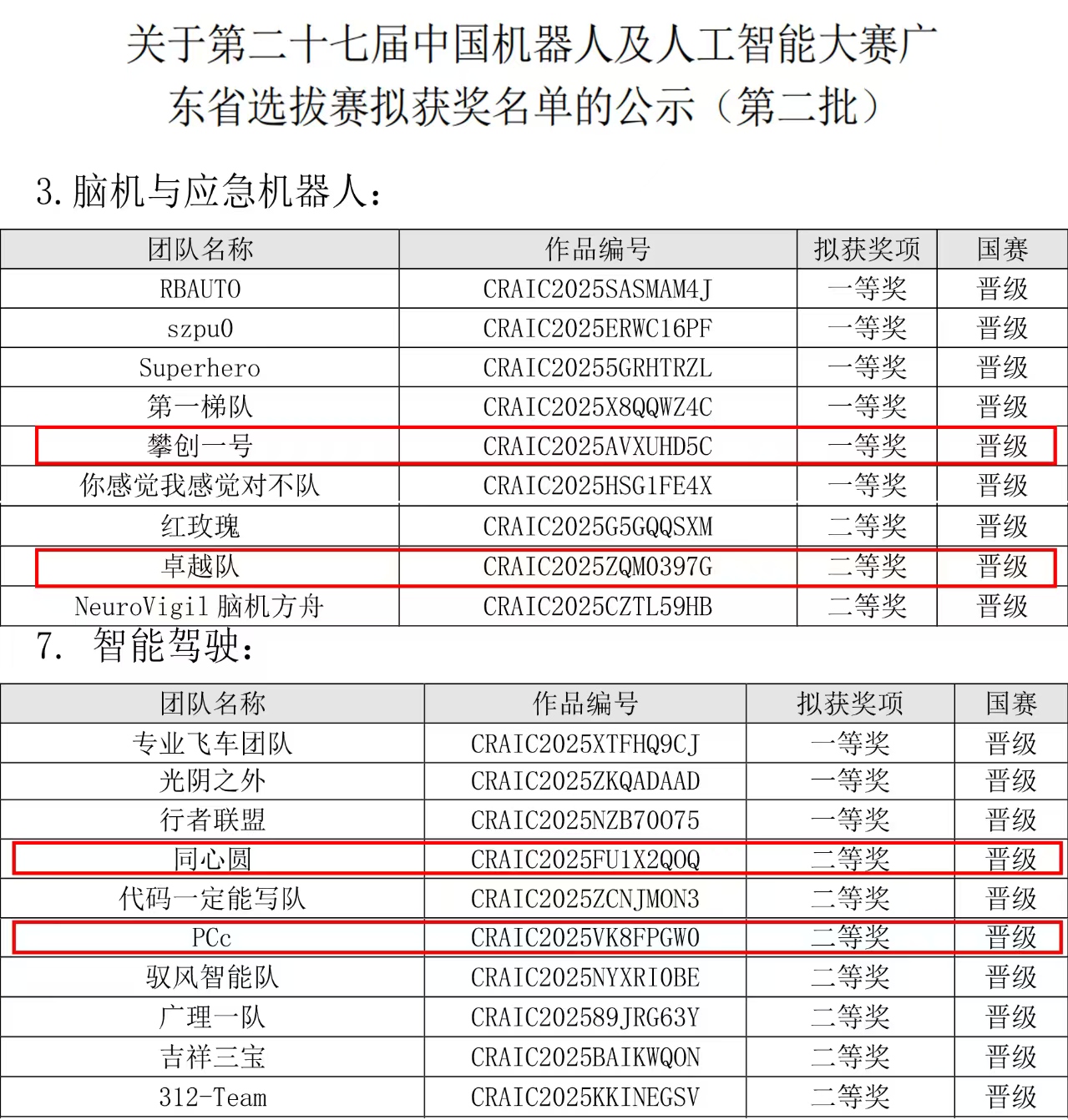 本网讯(记者 雷天坪 郭爱真)6月17日,第二十七届中国机器人及人工智能大赛广东省选拔赛获奖结果揭晓,汽车与交通工程学院学子在赛场上凭借扎实的专业知识与创新实践能力,4支队伍斩获省级一等奖1项、省级二等奖3项,并成功晋级七月份举办的全国总决赛。