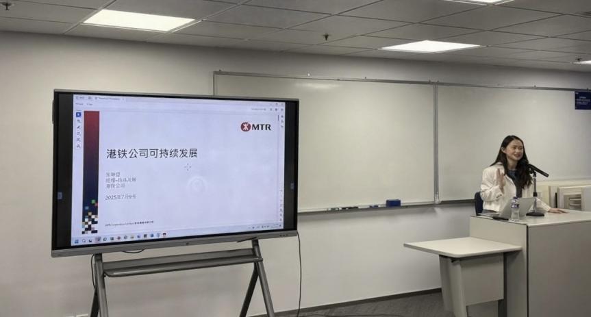 7月9日,研学团与香港铁路有限公司开展专题交流,公司经理朱林铿以“港铁公司可持续发展实践”为主题,结合丰富的项目案例,系统分享了港铁在铁路建设、社区连接、运营管理及低碳目标实现等方面的经验,学生们就内地城市轨道交通建设的可借鉴经验与朱林铿展开热烈讨论。当日下午,师生们参访香港科学园,深入了解量子人工智能实验室在智能制造、人工智能以及金融科技等方面的前沿研究,学生们通过丰富的互动展示和沉浸式体验,直观感受到香港在智慧城市、绿智交通、生命科学绿色科技和机器人技术等领域的突破性成果。
