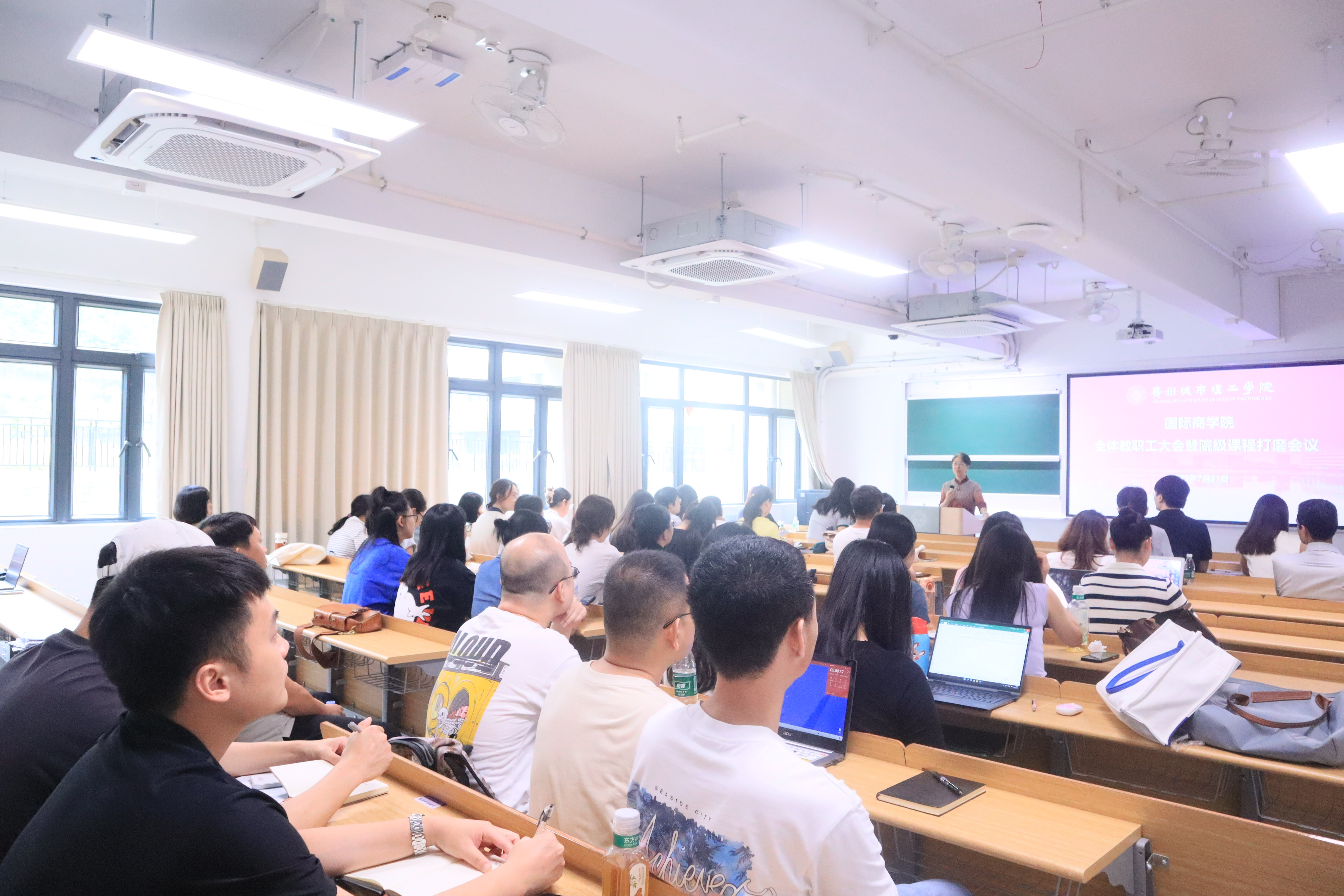 本网讯(记者 黄凤娟)为强化师资队伍建设、提升课程教学质量,为本科教学工作合格评估夯实基础,7月21日,国际商学院在A11-202召开全体教职工大会暨院级课程打磨会议。院长安然、党总支副书记梁伟滔、副院长陈少铭及全体教职工出席会议,会议由安然主持。