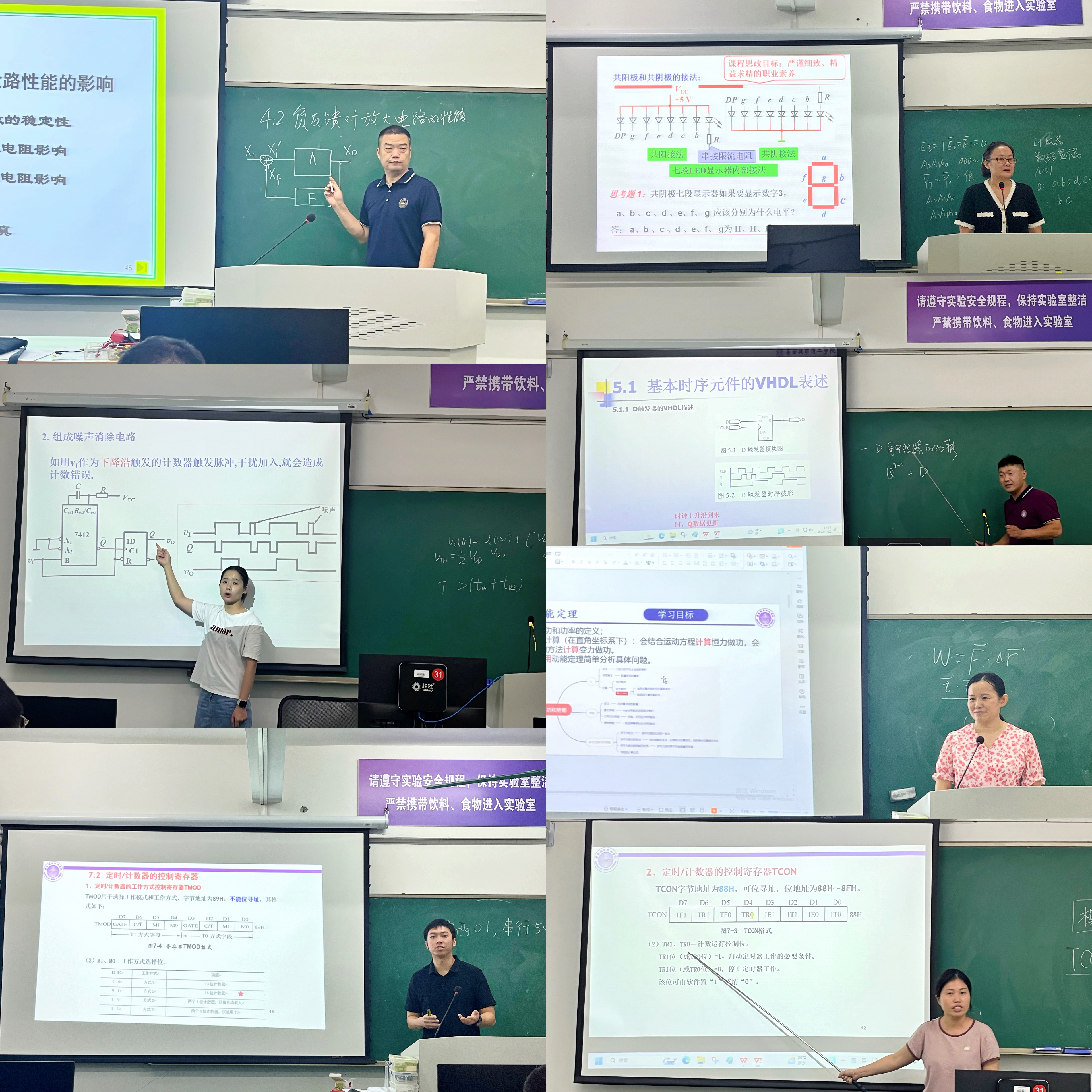 本网讯(记者 陈少玲)为切实提升教师课堂授课规范与教学实效,强化教学核心能力建设,7月22日至23日,电子信息工程学院/通信工程学院在B7教学楼,分三组开展课堂教学质量提升工程暑期专项活动。学院院长姚若河、副院长曹英烈、教学督导组全体成员及教师参加了活动。活动邀请了华南理工大学冯金垣和贺前华教授以及其他兄弟高校的专家共6人,组成校外专家团队,与学院督导分别组成三个评委小组,对教师课堂授课规范和过程材料进行针对性评审。