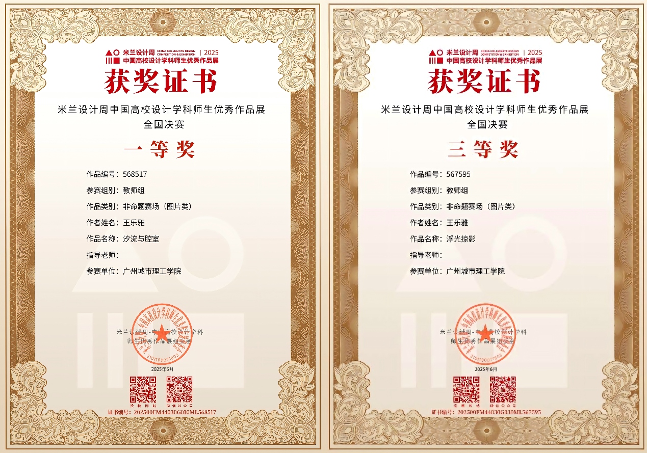 建筑学院王乐雅老师摄影作品《汐流与腔室》获得全国赛一等奖、《浮光掠影》获得全国赛三等奖,并受组委会邀请作为获奖代表上台领奖。王乐雅主讲建筑设计、建筑摄影、流媒体技术及其应用等相关课程,自2022年到建筑学院任教以来,先后指导学生获得未来设计师·全国高校数字艺术设计大赛全国赛二等奖、“米兰设计周-中国高校设计学科师生优秀作品展”广东赛区三等奖,获得广东省环境艺术设计大奖优秀指导教师等多项荣誉,凸显了bevictor伟德青年教师优秀的专业素养和过硬的专业技能。