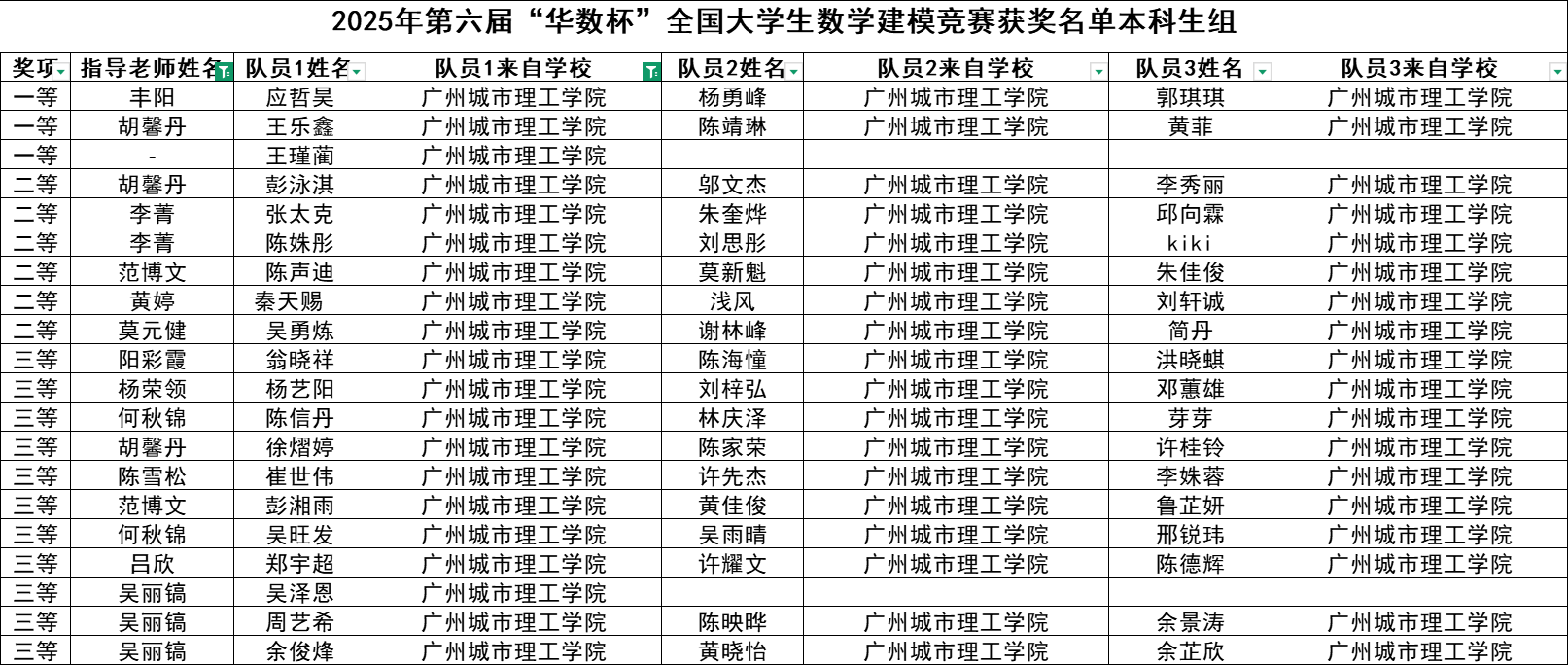 荣获全国一等奖的队伍由计算机工程学院/大数据学院应哲昊、杨勇峰、郭琪琪三名同学组成,在教师丰阳的指导下,针对赛题提出了创新模型与算法,其解决方案在实用性、创新性和数学严谨性等方面均受到评审专家高度评价。由胡馨丹老师指导,由王乐鑫、陈靖琳、黄菲等组成的队伍也获得全国一等奖。此外,王瑾蔺同学以个人形式参赛,独自完成编程,撰稿等赛事任务,并斩获一等奖。赛后,竞赛负责人吴丽镐老师表示:“‘华数杯’竞赛重视对学生数学建模全流程的锻炼与反馈,在学院组织的赛前辅导中,每一支参赛队伍均可在实战中获得指导老师细致的建模指导,老师的指导贯穿整个赛事的全程,具有实践意义和教学价值。同学们在比赛中表现出的解决复杂实际问题的能力,充分反映了学校近年来推动学科交叉、强化实践教学改革的成果。”
