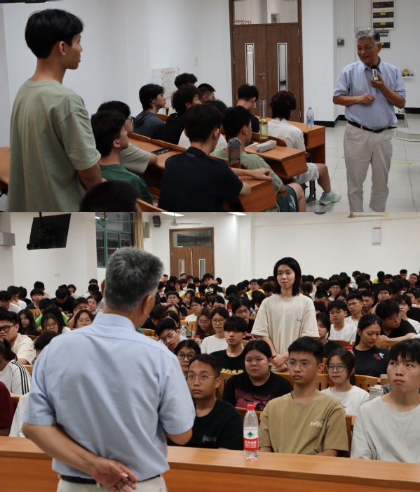 互动环节,新生们踊跃提问。同学们的问题既有关乎专业学习的困惑,如基础课程与未来前沿技术的关系,也有对行业未来发展趋势的好奇。张尧对每一个问题都给予了耐心细致地解答。他嘱咐同学们,“万丈高楼平地起,无论技术如何演进,扎实的基础知识永远是未来深入学习和从事任何领域工作的根本。”他鼓励大家要珍惜大学时光,刻苦学好数学、物理、电路等专业基础课程,培养科学的思维方法和解决复杂工程问题的能力,为未来的学术深造和职业发展打下牢固的根基。