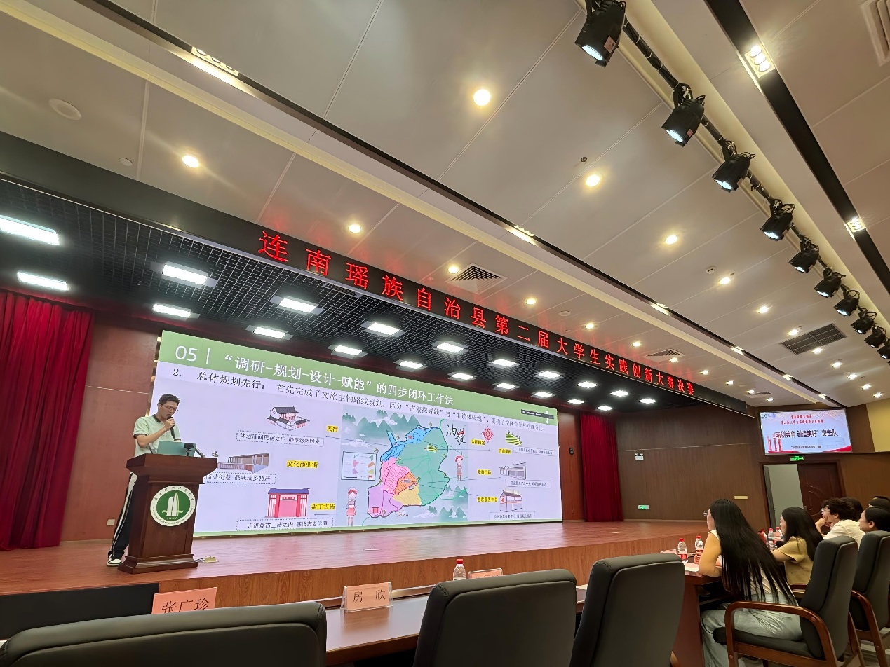 决赛中,团队以“生态为基、文化为魂、产业为用”的理念为核心,展示了团队从乡村采风、广泛调研、非遗挖掘、规划设计到文创开发的全过程,最终设计出瑶乡特色文旅路线与文创产品,展现对乡村发展的多维助力。其推动绿美生态建设与非遗传承、产业发展相融合的思路,获评委高度认可,最终荣获乡村规划及绿美生态建设赛道一等奖。